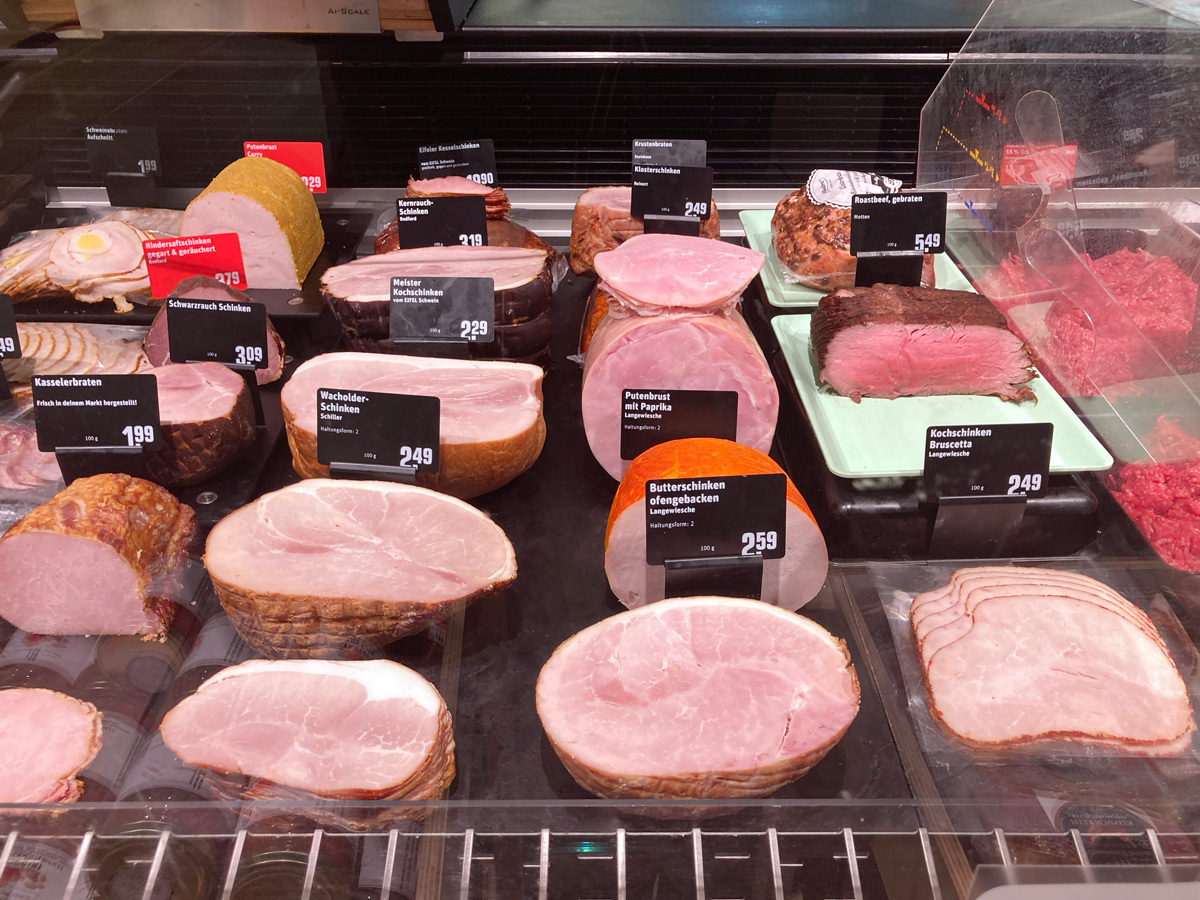 „Durch die Entscheidung für PricoPlex haben wir ein Gesamtkonzept eingekauft“, erläutert Bell. Dazu zählt unter anderem die klare farbliche Einteilung. So gibt es für das Eifelschwein jetzt gelbe Schalen, Geflügel wird in roten Schalen angeboten und Rindfleisch in schwarzen Schalen.