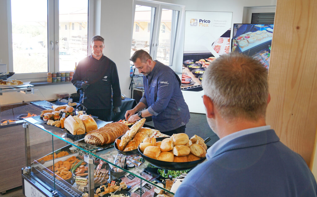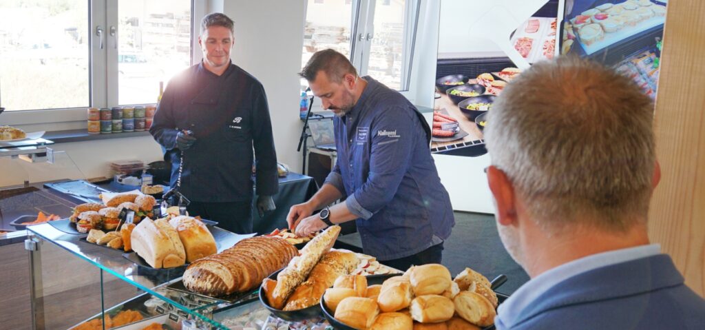 Der leckerste Snack bleibt liegen, wenn er nicht attraktiv präsentiert wird. Wenderoth und Klausmann betonten daher immer wieder, den Snack mit der Schnittseite bzw. offenen Seite zum Kunden hinzulegen. Mit Thekenstufen, Snackwelle und Salatschalen bringen Sie Ihre Produkte optimal zur Geltung und sorgen den ganzen Tag über für eine einladende Inszenierung in Ihrer Theke. Wichtig ist für Bäcker und Metzger also auch, mit guten Partnern im Bereich Ladenbau und Thekenschalen zusammenzuarbeiten.